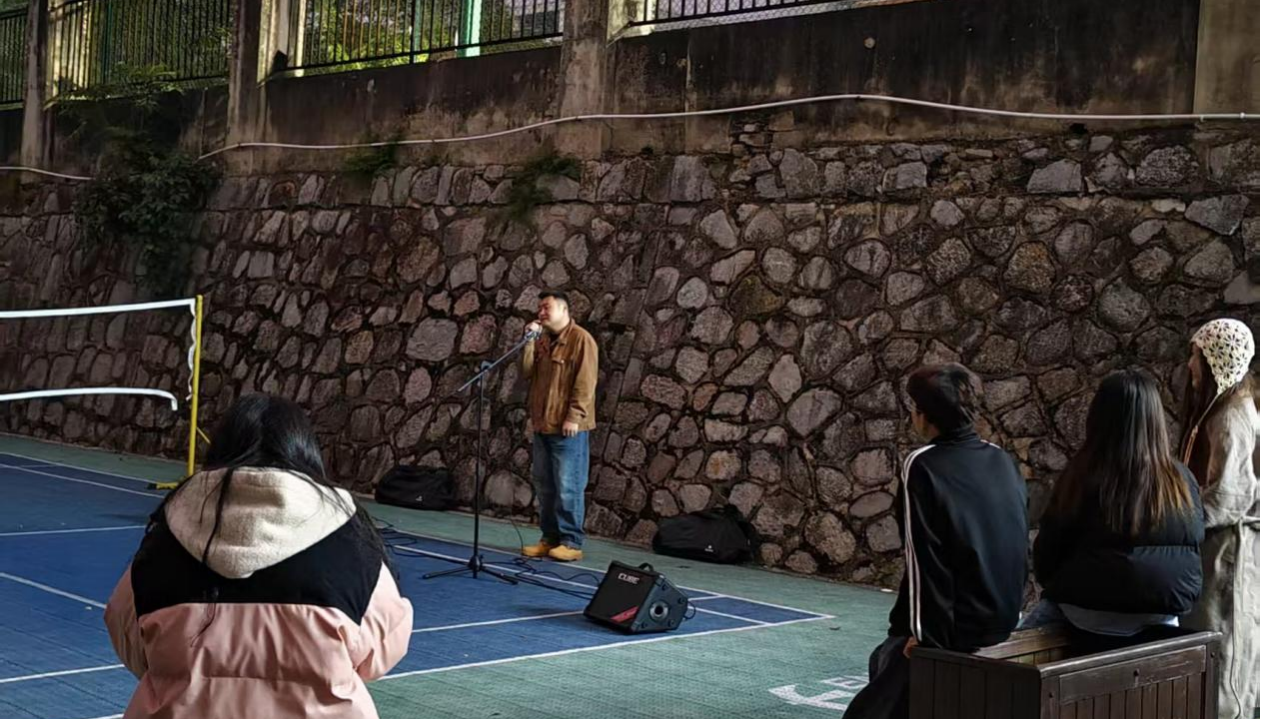 2025年11月4日,音乐学院天韵艺术团与贵阳学院文艺文化服务队在一小区旁举办“重拾经典·童声童趣”主题路演音乐会。音乐会以经典儿歌、童谣为核心,用纯真童声搭配多元艺术呈现,为现场学生带来了一场兼具怀旧感与青春气息的文化盛宴,吸引近数名观众驻足观看。许多同学表示,不仅让成年人重拾了童年记忆,而且感受到经典儿歌的魅力,为校园文化建设增添了温暖的一笔。