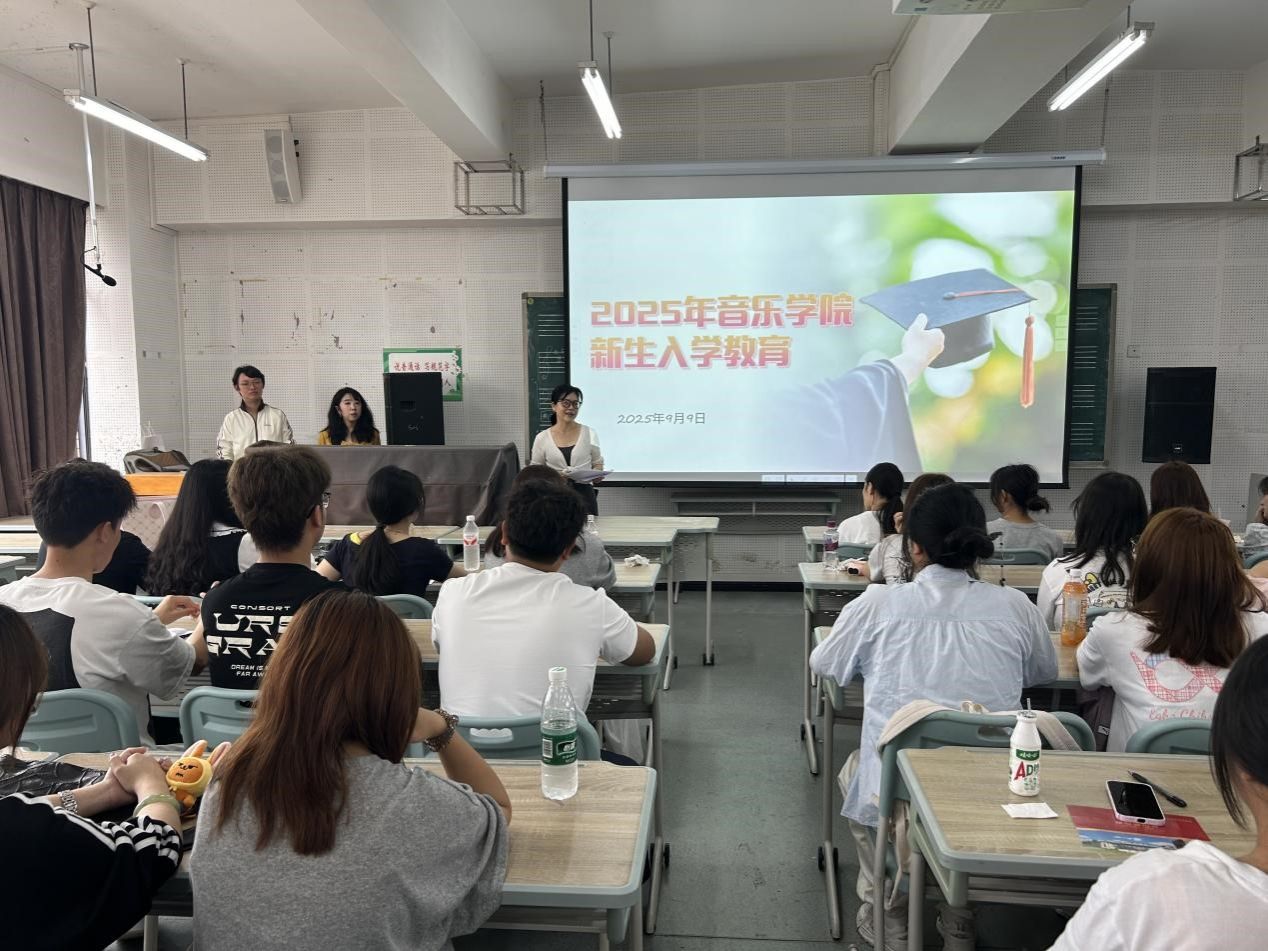 2025年9月9日至9月10日,音乐学院通过新生见面会、班会、走访寝室等形式组织开展了新生入学教育活动,学院党委书记何胜利、院长曾果果、党委副书记黄明珠、副院长黄汨、团总支书记冯洁、教研室主任扶燕、辅导员傅奕欣以及班主任刘小麟参加。