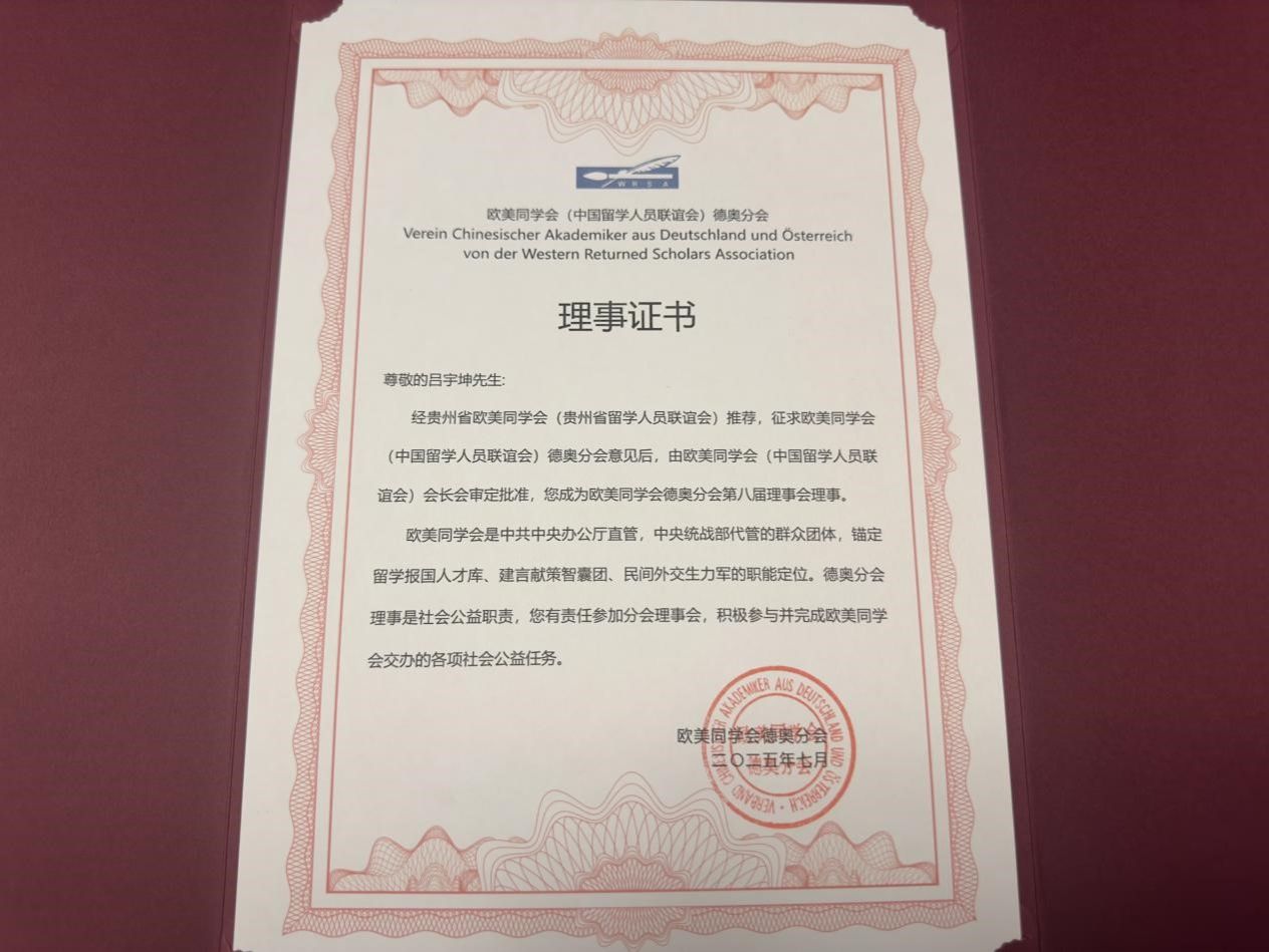 我院吕宇坤教授入选欧美同学会德奥分会理事